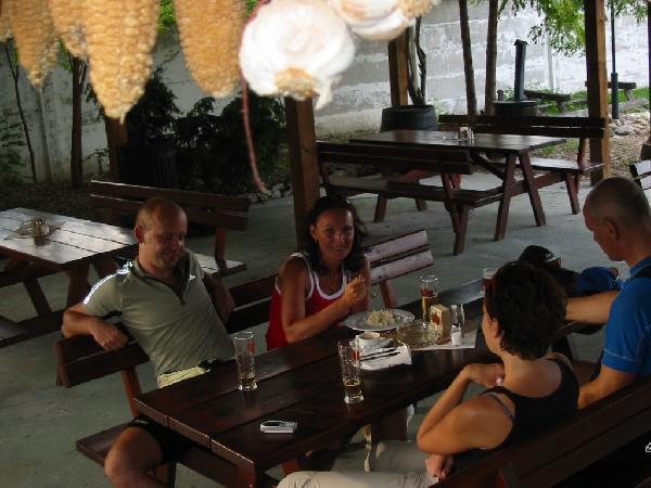 U Dodiho v Hamuliakove, v ktorej sa v minulosti čapovalo výborné pivo Bernard (10 stupňové za 20 Sk). Slnečné a veterné počasie bolo dôvodom, že sme volili cestu lesom so zastávkou v našom obľúbenom bufete