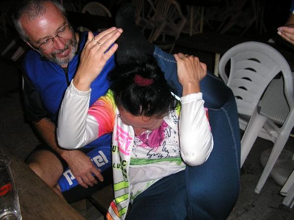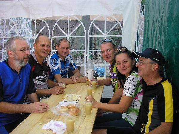 Račianske vinobranie - 17.9.2006 Petržalka-Rača-Vajnory-Ivánka pri Dunaji- Zálesie-Malinovo-Most pri Bratislave-Studené-Dunajská Lužná-Kalinkovo-Hamuliakovo-Petržalka Dĺžka trasy: 66 km Do Rače sme prešli najkratšou cestou. Bola nedeľa, takže premávka na trase nebola moc hustá. Počasie bolo slnečné. Burčiak na slnku, na lačno a na ex by urobil svoje. Preto sme hodovali na cigánskej pečienke, klobáske, lokšiach. Stretli sme tam veľa zaujímavých ľudí. Okrem našich cyklokamarátov - cykloborcov Blavákov, to bol Ivan, ktorý nás milo privítal vo svojom stánku U opičáka alebo bývalý československý reprezentant v atletike Tóno. Vydržali sme v tej Rači dlhšie ako sme plánovali, ale napriek tomu sme plánovanú trasu zvládli bez problémov. Cestou z Hamuliakova sme postretávali ďalších cyklokamarátov a našli sme aj stratené šteniatko kokršpaniela, ktorého sa ujal Mirec, naložil ho do batôžku na nosiči. Bol to vydarený deň, skončili sme až za tmy. Technické údaje: Dĺžka trasy: 65,76 km, priemerná rýchlosť: 22,41 km/h, čistý čas jazdy: 5,56 hod., maximálna rýchlosť: 45,4 km/h (CJ). |