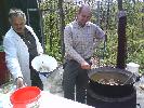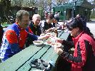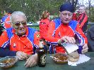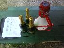 |  Predseda Lacko má príhovor |  Hlavný organizátor nás víta... |  ... a dáva pokyny. |  Po dobrom jedle trochu pohybu |  ...hádzanie krúžkami na fľašu. |  Ceny pre 3 víťazov - sekt |  Prichádzajú opozdilci Hanka, Ľubka a spol. |  S Hankou sa chcel odfotiť aj Karol |  Predseda víta ďalšiu krásavicu Alenku. |