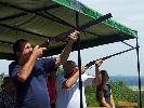 Do Plaveckého Podhradia sme prišli na pozvanie pána Milana Hurbana a jeho firmy DIOS, sro., na „strelecký deň“ organizovaný pre jeho priateľov a obchodných partnerov. Strelnica sa nachádza asi kilometer za obcou a je v správe Poľovníckeho združenia Plavecké Podhradie. Na mieste nás privítala za ideálneho počasia výborná kuchyňa – všetko poľovnícke špeciality z „domácej produkcie“ pána Milana – tlačenka, diviačí guláš, pečené mäso atď. Hlavným bodom programu však boli preteky v streľbe z brokovnice na asfaltových holubov, ktorej sme sa zúčastnili aj my – amatéri. Streľba na holuby je stará záľuba, kedysi sa strieľali skutočne živé vypustené holuby (odtiaľ aj názov športovej disciplíny), dnes našťastie len "umelé". Na strieľanie je potrebná presnosť, rýchlosť, sústredenosť, ale aj dobrý inštruktor, a ak chcete byť naozaj dobrí, najmä dlhodobý tréning. Neušlo sa nám síce miesto na stupni víťazov (ako napr. presne o 3 týždne neskôr Zuzana Štefečeková na OH 2012 v Londýne), ale celodenný výlet na Záhorie stál za to. Ďakujeme organizátorom za pekný športový deň.
