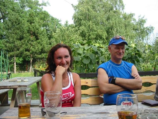 U Dodiho v Hamuliakove, v ktorej sa v minulosti čapovalo výborné pivo Bernard (10 stupňové za 20 Sk). Slnečné a veterné počasie bolo dôvodom, že sme volili cestu lesom so zastávkou v našom obľúbenom bufete
