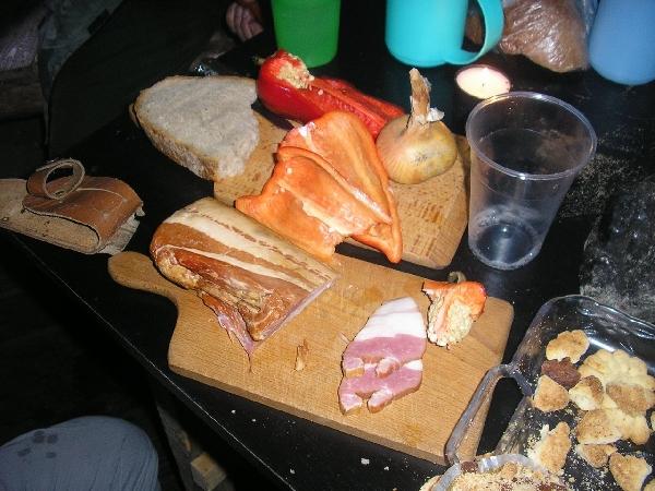 Milanovský pochod - 2. ročník - 25.11.2006 Rača - Biely Kríž - Salaš - Kozí Chrbát - trampská chata pod Volhoviskom a späť Dĺžka trasy: 21 km Naši kamaráti rušňovodiči, turisti a cyklisti Milanovia zorganizovali pri príležitosti svojich nadchádzajúcich menín 2. ročník Milanovského pochodu. Stretlo sa nás sedem v Račianskej vieche. Po modrej turistickej značke sme prišli na Biely Kríž. Tam sme sa zvítali s našimi starými známymi diviakmi. Boli lenivé, iba ležali. Po krátkej prestávke a občerstvení sme pokračovali po červenej turistickej značke. Kúsok pred Kozím Chrbátom sme odbočili smerom na Volhovisko mimo turistickej značky. Prišli sme až k trampskej chate, ktorú Milanovia poznali. Nikto tu nebol, tak sme si otvorili a vošli dnu. Zakúrili sme v sporáku. Zo začiatku, kým sa oheň rozhorel, slabý ťah komína spôsobil, že dym nám ostal aj v chate. Po chvíli prišli aj traja domáci trampi, ktorí túto peknú chatku postavili. Jeden z nich sa volal tiež Milan, takže sme mali spolu štyroch Milanov. Plánovali sme urobiť ohník aj vonku, ale všetko drevo bolo príliš mokré a ani sa nikomu moc nechcelo ho zakladať. Takže prinesené špekačky sme neopekali. Milanovci však nachystali poriadnu hostinu z dvoch druhov slaniny, papriky, cibule a vynikajúceho čerstvého chleba. Čas rýchlo ubehol, bolo treba ísť naspäť, keď sme sa chceli vrátiť za svetla. Od Bieleho Kríža sme už však išli po tme. Záverečnú bodku sme spravili opäť v Račianskej vieche. Ďakujeme Milanom za pekný výlet a pohostenie.Už teraz sa tešíme na budúcoročný 3. ročník Milanovského pochodu. |