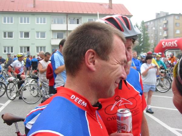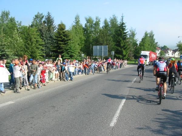 Okolo Tatier 40. ročník 25.5. - 27.5.2007 Nižná - Zakopané - Suchá Hora - Tatranská Lomnica - Vysoké Tatry - Liptovský Mikuláš - Liptovský Trnovec - Huty - Nižná Dĺžka trasy: 210 km Na tohtoročný jubilejný 40. ročník podujatia Okolo Tatier bolo oficiálne prihlásených 940 cyklistov, čo je doteraz najväčší počet v histórii tejto akcie. Počty prihlásených cyklistov v minulých rokoch sú zverejnené na stránke Cykloklub Nižná. V piatok po slávnostnom zahájení cykloakcie, ľudových tancoch a príhovore predsedu Cykloklubu Nižná (Miloš Kuboš), ako aj ďalších oficiálnych predstaviteľov regiónu sa podujatie začalo v uliciach Nižnej, ktoré boli lemované deťmi a ďalšími priaznivcami pretekov. Na štarte sme si spoločne zaspievali aj Hymnickú pieseň. Po približne prvých 20 kilometroch prišli prvé stúpania, ktoré oddelili od hlavného pelotónu prvé skupinky. Atmosféra pripomínala Preteky mieru až po hraničný prechod Suchá Hora, kde sa dalo občerstviť, a po kontrole dokladov sme pokračovali do mesta Zakopane. Cestou sme nevynechali ani známy Baran-džús (žinčica s borovičkou), ktorý urýchlil náš presun, našťastie zatiaľ po ceste. Na miestnom trhovisku v Zakopanom sme mohli obdivovať rôzne dekoratívne tvary výrobku s názvom OSCYPEK, ktorý má rozdielny spôsob prípravy i zloženia (obsah kravského mlieka do 40 %, údenie len na salašoch) ako Slovenský oštiepok - podrobnosti sú v článku Oscypek už oštiepok neohrozuje. Pešia zóna (korzo) v Zakopanom bola pre nás - cyklopanicov tejto akcie - veľkým a milým prekvapením. Celkový dojem z poľskej časti etapy bol veľmi dobrý, nedominovali tu paneláky, komíny a plechové garáže - ale vkusná ľudová drevená architektúra. Táto časť prvej etapy by stála za samostatný cyklovýlet s doprianim si dostatku častu na drevené kostolíky, drevenice a na kvalitnú originálnu zdraviu prospešnú žinčicu, ktorá je nepasterizovaná a vyrobená tradičnou metódou, podobne ako aj nepasterizované pivo Bernard z Humpolca. Zo Zakopaného sme sa vydali na skutočnú horskú cyklistiku do Tatier. Pred hranicami nás čakali 2 horské prémie aj s najvyšším bodom 1106 m n.m. pred zjazdom do Lysej Poľany. Na našom území po krátkom malom prevýšení nás čakala skúška kondície – najnáročnejšia časť etapy – výstup na Príslop, relatívne krátky ale s prudkým stúpaním. Na Príslope organizátori pripravili občerstvenie – banány, koláče a vodu. Po dlhom zjazde do Ždiaru a Tatranskej Kotliny nás čakal posledný výstup do Tatranskej Lomnice a kempingu FICC. Sobota bol oddychový deň, ale takmer nikto neoddychoval, vymenili sme pedále za vibramky a všetci tento deň využili na turistiku. Jedni išli na Štrbské pleso, iní na Brnčalovú chatu, alebo naša malá skupinka išla na Reinerovu a Zamkovského chatu. Večer bol pri pripravený bohatý program so živou hudbou, neodmysliteľnými tanečkami a opekaním špekáčiek. V nedeľu po náročnom turistickom a kultúrnom programe z predošlého dňa sme sa vydali na druhú etapu. Z Tatranskej Lomnice sme museli prekonať vyše 20 km tiahly výstup s 500m prevýšením na Štrbské Pleso (najvyšší bod 1265 m). Potom nasledovala „pohoda“ – 60km zjazdu striedajúceho sa s rovinkami do Liptovského Mikuláša a Liptovského Trnovca. V Liptovskom Trnovci čakal autobus na tých, ktorí si netrúfali na záverečný „bonbónik“ – výstup na Huty, čo je prevýšenie 500m v priebehu niekoľkých kilometrov nekonečnými serpentínami s prudkým stúpaním. Avšak odmenou pre tých zdatných bol krásne výhľady na Borové, Liptovskú maru, občerstvenie v Zuberci a záverečný zjazd do Nižnej. Záverom možno konštatovať, že akcia bola veľmi vydarená, avšak treba poznamenať, že Okolo Tatier nie je výlet pre „sviatočných“ cyklistov – cyklotrasy si vyžadovali kvalitný, dobre udržiavaný bicykel, dobrú kondíciu a silnú vôľu. Návštevníkom ponúkame výber z 1016 fotografií od 5 autorov © (Cyklomajo, Cyklojaro, Cyklojuraj, Lacko O., Peter M.): Pozn.: Pre výberové prezeranie obrázkov stačí kliknúť na podčiarknutú časť akcie Štvrtok 24.5.2007: Nakladanie bicyklov a na štarte, V autobuse, Príchod do Nižnej a registrácia, Ubytovanie v Nižnej Piatok 25.5.2007: Slávnostné otvorenie cykloakcie v Nižnej, Štartujeme: Nižná - Suchá Hora, Suchá Hora - Lysá Poľana, Zakopane - kostol (Jan Pawol II), Zakopane - trhovisko, Zakopane - pešia zóna, Suchá Hora - Tatranská Lomnica, Tatranská Lomnica - ubytovanie, Sobota 26.5.2007: Oddychový cyklovýlet - Starý Smokovec, Turistika I - Hrebienok, Turistika II, Športové súťaže, Opekanie špekáčkov, Nočné tancovanie na tyči (vstup len nad 18 rokov), Nedeľa 27.5.2007: Tatranská lomnica - Štrbské Pleso, Cesta na Štrbské Pleso električkou, Štrbské Pleso - Liptovský Trnovec, Liptovský Trnovec - Huty - Nižná, Poďakovanie: Ďakujeme Cykloklubu Nižná za perfektnú organizáciu, pohostinnosť a výbornú atmosféru počas cyklopodujatia, ako aj Cykloklubu Apollo za zaistenie pohodlného a tichého ubytovania, bezpečnej dopravy nás i bicyklov - s profesionálnym prepravcom a výbornými vodičmi k našej spokojnosti - MT-TOUR. Absolvované trasy: Piatok 25.5.2007 Trasa: Tvrdošín-Nižná-Tvrdošín-Trstená-Liesek-Hladovka-Suchá Hora-(hraničný priechod)-Chocholov-Zakopané-Lysá Poľana-(hraničný priechod)-Javorina-sedlo Príslop-Tatranská Kotlina-Tatranské Matliare-Tatranská Lomnica (Eurocamp Ficc) Technické údaje: dĺžka trasy: 108,32 km, priemerná rýchlosť 18,22 km/h, čistý čas jazdy: 5:56 hod., maximálna rýchlosť: 66,4 km/h (CJ) Sobota 26.5.2007 Voľný program - oddychový deň Trasa: (Eurocamp Ficc)-Tatranská Lomnica-Starý Smokovec a späť Technické údaje: dĺžka trasy: 21,54 km, priemerná rýchlosť: 16,36 km/