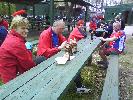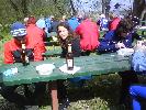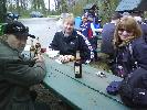 |  Predseda Lacko má príhovor |  Hlavný organizátor nás víta... |  ... a dáva pokyny. |  Po dobrom jedle trochu pohybu |  ...hádzanie krúžkami na fľašu. |  Ceny pre 3 víťazov - sekt |  Prichádzajú opozdilci Hanka, Ľubka a spol. |  S Hankou sa chcel odfotiť aj Karol |  Predseda víta ďalšiu krásavicu Alenku. |