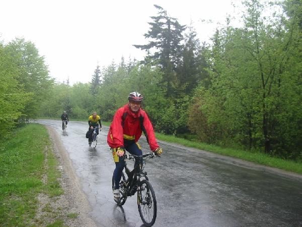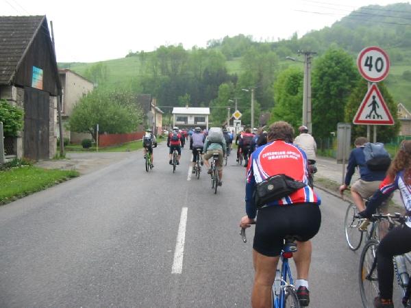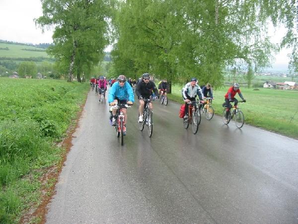 V Zakopanom sa každý cyklista z našich klubov mohol slobodne rozhodnúť ako ďalej: ísť, či neísť. Vzhľadom na nevľúdne, sychravé a upršané počasie to bola pre niektorých otázka: byť či nebyť. Natiahli sme latexové ochrany, nepremokavé ponožky, goratexové ochrany tenisiek, nepremokavé nohavice a iné doplnky, pričom niektorí cyklisti-ťažkoodenci pripomínali skôr rybárov, ktorí si zabudli doma udicu. A tak sme šli. Tabuľa hraničný prechod 16 km znela optimisticky, ale tí skúsenejší už vedeli čo ich čaká. Masochisti si prišli na svoje najmä pri stúpaní na sedlo Príslop, kde sa kombinovalo najprudšie stúpanie etapy s protivetrom a dažďom. Ako odmena bolo organizátormi pripravené občerstvenie v podobe banánov, džúsov, všakovakých buchiet, slaných a sladkých koláčov. Chýbal asi len teplý čaj. Zásoby organizátorov boli väčšie ako snaha cyklistov posilniť sa a zvýšiť svoju hmotnosť pred tiahlym zjazdom do malebnej slovenskej dediny Ždiar spáchaním hriechu obžerstva. Kto mal navyše ešte aj zimnú bundu bol vo výhode - a jeho bicykel nevibroval v rytme drkotania zubov. Minuli sme pasúce sa ovečky, a pri smerovej tabuli s nápisom Tatranská Lomnica 7 km sme vedeli, že naša posledná kvapka potu ešte neskropila slovenskú zem...