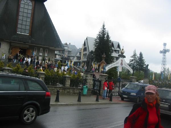 Po krátkej prestávke sme pokračovali územím Poľska cez malebný kraj plný drevených chalúpiek (aj s ponukami nocľahov), kostolíkov, koní a kravičiek. Pred tradičnou zastávkou na salaši s ponukou „baran džúsu“ (borovička + žinčica) začalo mrholiť a tak sme si nasadili proti dažďové ochranné prostriedky. Nie každý cyklista zrýchľoval svoj pohon vysoko-oktánovým ovčím produktom, a tak aj ostatní sme sa čoskoro ocitli pred kostolom v Zakopanom ktorý posvätil Svätý otec Ján Pavol II, a po krátkom zjazde na trhovisku plnom