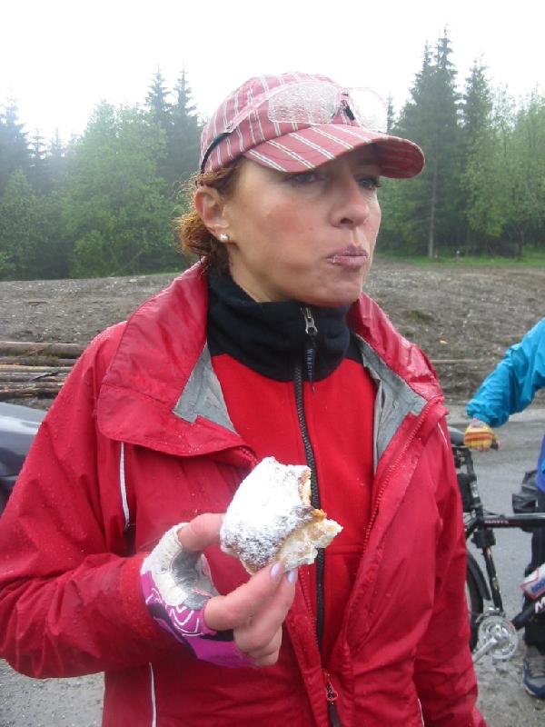 oscypkov a iných dobrôt. Pre rozkopové práce v tejto lokalite sa najmä prvo-okolo-tatranskí cyklisti domnievali že sú v Rozkopanom... Prechádzku hore korzom sme nemohli vynechať, okrem McDonaldu sme videli aj goralský mekáč (Baconald). Miestne podniky sme využili najmä na vyprázdnenie nádrží (ak okrem potu niečo išlo aj do mechúra) a následnom doplnení pohotovostných fliaš, i keď vody z oblakov bolo dosť, našťastie dážď počas našej prechádzky mal tiež krátku prestávku.