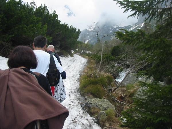 Lydka. Po vyše hodine chôdze sa ocitáme na chodníku pokrytom súvislou vrstvou snehu. Niektorí v teniskách, iní v sandáloch. Našťastie chatár Juraj Gantner nájomca