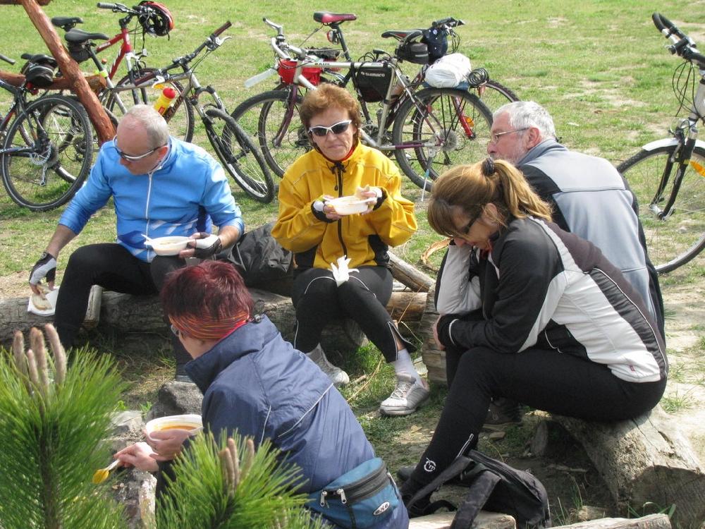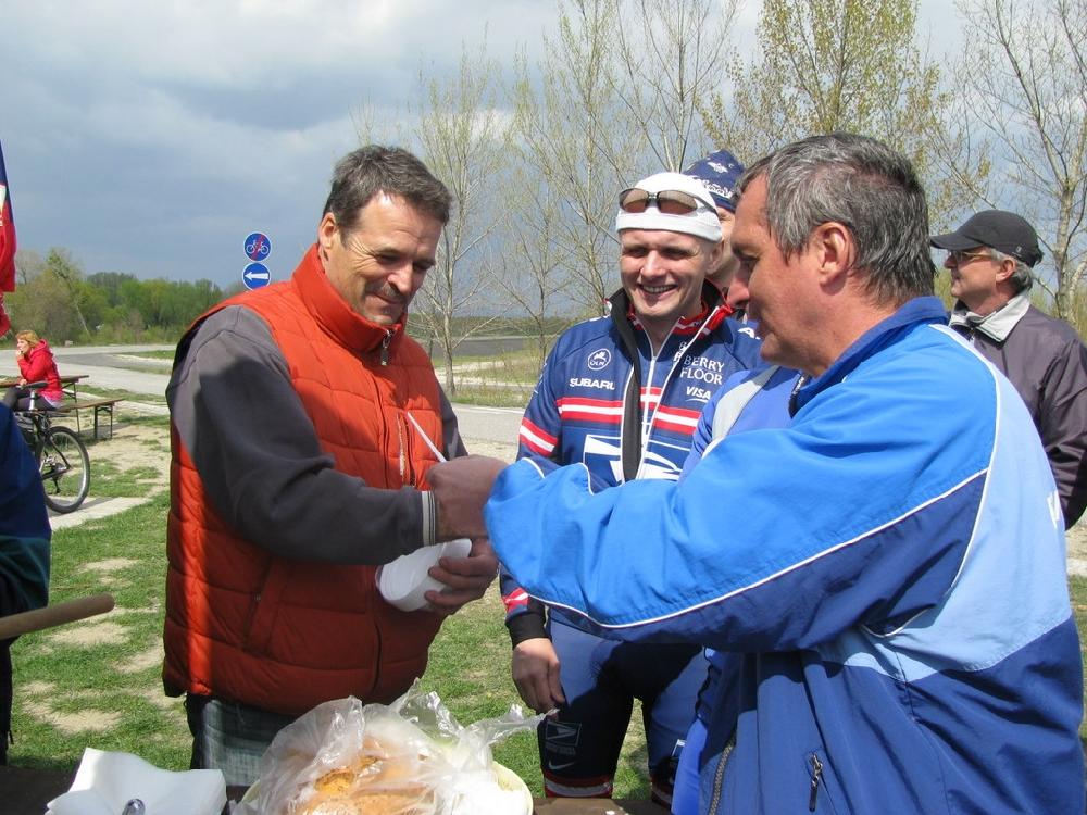 Otvorenie sezóny Cykloklubu Apollo, 10.4.2010 Bratislava – Čunovo - Bratislava Dĺžka trasy: 40 km Cykloklub Apollo organizuje tradične krátku cyklotúru označenú ako „Otvorenie sezóny“. Tohto roku bolo stretnutie na hrádzi na pravom brehu Dunaja a cieľ bol bufet Obrátka pri Čunove. Tejto akcie sa zúčastnilo vyše 80 cyklistov vrátane našich členov. Počasie bolo „ideálne“, spočiatku slnko, neskôr dážď aj s ľadovcom, teplota 5 °C ráno a maximálna 12 °C popoludní vyhovovala dobre oblečeným cyklistom. Niektorí doslova „premokli do nitky“, to nás však neodradilo od dobrej nálady. Navyše – guláš a povinná rehydratácia chutili. |
