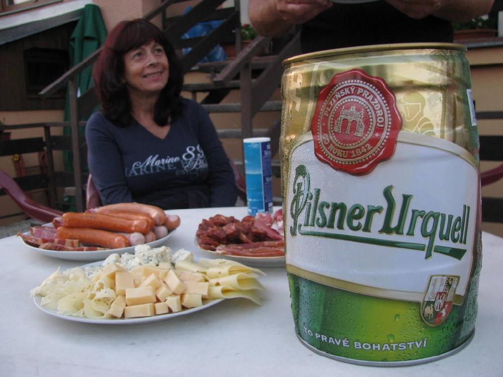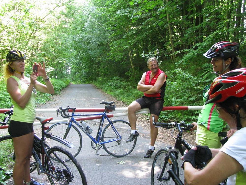Na bicykli k Banskoštiavnickým tajchom a na vrch Sitno, 7.7. – 10.7.2011 Banská Štiavnica, Štiavnické Bane, Sitno Dĺžka trasy: 90 km Počet účastníkov: 7 Mapa Motto: „Robiť si svoju prácu tak, aby si každý klient u nás príjemne oddýchol, znovu sa k nám vracal a podelil sa o svoje pocity s ďalšími ľuďmi“ Penzión Príjemný oddych Pekné fotografie i reportáž, ktorú napísal Laco Olle s názvom Počúvadelské jaterá - Sitno nás inšpirovali (po Lago di Garda) k výletu okolo ďalších - tentoraz umelo v 18. storočí vybudovaných jazier - Banskoštiavnické tajchy . Ubytovaní sme boli na brehu jazera Tajch Veľká Vindšachta (Windschachter Teich). Voda z tejto nádrže postavenej v rokoch 1712 – 1715 (spolu s vodou z nádrže Evička a Spodná Vindšachta), mala dodávať energiu na pohon 8 čerpacích zariadení s kývavým pákovým prevodom, určených na čerpanie vody zo zatopených baní Hornej Bieberštôlne. Vindšachtský tajch je známy aj akciou „chyť a pusť“ alebo „bez privlastnenia si úlovku“ – zásadou, ktorou sa riadia aj mnohí naši cykloturisti... Ubytovanie v penzióne Cosmopolitan III nás milo prekvapilo vysokým európskym štandardom ubytovania, štedrými euroraňajkami (ako v 4 *), výbornou presso kávou k raňajkám, možnosťou kvalitného domáceho stravovania v reštaurácii (do 20:00 hod.) ako aj nevtieravou a ochotnou obsluhou. Chutili nám najmä poctivé bryndzové halušky s domácou bryndzou a so slaninou (za 4 €). Odporúčame pobyt v apartmánoch s veľkými terasami priamo na brehu jazera s možnosťou opaľovania, člnkovania a grilovania. Rezervovať ubytovanie sa tu dá aj cez www.booking.com. Rodinné ubytovanie v penzióne Vila Vážka neďaleko Vindšachtského jazera malo tiež svoje čaro – bývali tam účastníci výletu z minulého ročníka. Súčasťou pobytu bola aj večerná opekačka, a spoločnosť stále príjemnej pani domácej. Odporúčame obe zariadenia k prežitiu príjemných chvíľ ničím nerušeného odpočinku. Aj sme skoro zabudli že sme na Slovensku - pokiaľ sme nevycestovali znovu v čase i v priestore - na Počúvadlianské jazero (5 km), kde nám aj mnohé dobové budovy a zákazové tabule (i služby) pripomenuli časy našich pionierských táborov. Teraz sa niektoré zariadenia využívajú podobným spôsobom pre nemeckých dôchodcov. Počúvadlianské jazero však stojí za návštevu kvôli prírodnej scenérii, občerstviť sa dá v tôni stromov v reštaurácii Koliba Veronika, kde podávali aj netradičné jedlá ako napríklad pľúcka na smotane, dukátové buchtičky a k nápojom sme dostali pagáčiky zdarma. Cestou späť sme sa zastavili aj na neďalekom salaši, kde sa dali kúpiť nepasterizované živé mliečne výrobky - tak ako ich odporúča profesor Ebringer: Jedzte bryndzu, budete zdravší Čerešničkou na torte bol aj tentoraz aeróbny kardio-cyklovýlet v horúcom letnom dni na vrch Sitno (1009 mnm). Na jeho vrchol vedie asfaltová cesta ktorá začína južne od obec Svätý Anton, kde sa nachádza známy Starý Hostinec s domácou tradičnou stravou, a kde nám po fotografovaní jedál ďalej zvyšovali ich hmotnosť... Na Sitno vedie asfaltová cesta prevažne lesom - v tieni - až na vrchol sa autom vyjsť kvôli závore nedá, takže našťastie sme stretli len dve autá, ktorých posádka to musela hore šlapať časť cesty na vrchol peši. Ďalší prístup je od Počúvadelského jazera (2 km, 684 mnm), avšak výhradne pre peších turistov. Pre pomalších bajkerov odporúčame zobrať so sebou prostriedky (napr. Autan) proti dotieravému hmyzu ktorý sprevádza cyklistov najmä pri rýchlosti blízkej turistickej chôdzi... Na vrchole je možnosť občerstvenia a kúpy suvenírov, rozhľadňa - zapísali sme sa tam (mnohí opäť) do pamätnej knihy. Pozreli sme si aj ruiny pamiatky so slávnou históriou a s prekrásnym výhľadom na okolie - Sitno hrad. Sitno je zo slovenských vrcholov asi najviac opradené povesťami a tajomstvami (napr. spisovateľ Jozef Horák a jeho Povesti). Na odporúčanie nášho spriateleného Bratislavského meštianského pivovaru a jeho sládka Petra Pramuka sme navštívili podobný pivovar v Banskej Štiavnici s názvom ERB v centre mesta, neďaleko od synagógy. Súčasťou pivovaru je aj divadlo. Návštevu sme neoľutovali - ochutnali sme komisionálne 3 z 5 druhov pív (ležiak svetlý, kvasinkové - Weisen a údený ležiak tmavý), ako aj pochúťky k pivu. Najviac nám chutili Cibulovie ringále obalované v cestíčku (foto) a kvasinkové svetlé pivo. Dievčatá ochutnali aj vynikajúce horúce maliny. Jedlá boli veľmi pekne servírované a obsluha vzorová. V samotnom meste svetového kultúrneho a prírodného dedičstva UNESCO Banská Štiavnica nás zaujalo najmä pekné Námestie svätej Trojice. V mineralogickom múzeu sme navštívili štôlňu Michal pri antikvariáte a informačnom stredisku na námestí. Bola tu možnosť ochladiť sa v letnom sparnom dni, podobne ako aj v rázovitom dvore v hornej časti námestia vľavo v reštaurácii Penzión Príjemný oddych, kde čapovali výborne vychladený Pilsner (priamo z Plzne), ktorý nám bol spolu so štôlňami nápomocný vo vyše 30-stupňových horúčavach. Dievčatá navštívili aj orientálnu Čajovňa Klopačka, ktorú tiež možno odporúčať. Ak sa pekné počasie sľúbi s prvými výhonkami kvalitných služieb - dá sa aj na Slovensku absolvovať cyklovýlet v peknom prostredí s výhľadom nielen na pekne zvlnenú krajinu a jazerá - ale i na švárne devy, o čo boli niektoré krajiny ako napr. Taliansko ukrátené... Súvisiace články: Štiavnické tajchy, Bajkom k tajchom, Počúvadlianské jazero, Klopačka, Banícke tajchy sú oázami pokoja Súvisiace cyklovideá: Zjazd z vrchu Sitno: Ideme dole, Zjazd zo Sitna - Lacko a Janette, Zo Sitna k hrachu, Dvojlackový zjazd zo Sitna, Sitno - Janet