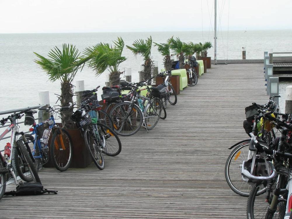 „rakúska“, navrhol ju Cyklopalo. Vlakom z Petržalky sme sa presunuli do mestečka Parndorf. Odtiaľ sme absolvovali trasu „okolo Neziderského jazera“ (100 km). Z Parndorfu sme išli po cyklocestách do Neusiedl am See a ďalej až do Illmitz na juhovýchodnej strane jazera. Spríjemnením nášho výletu bol určite trajekt loďou do Mörbisch am See na západnej strane