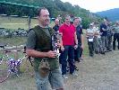 |  Ceny dodala firma DIOS, s.r.o. |  Poháre pre víťazov s názvom podujatia |  Strelnica Štimberk - streľby začínajú. Holuby sú vrhané rýchlosťou ca 30m/sek (108km/hod.) |  Inštruktáž pre Cyklomartina - mieriť musí pred asfaltového holuba, tzv. predsadiť. |  Povinná výbava - dvojhlavňové brokovnice, chrániče sluchu a oranžové "holuby" |  Náboje obsahujú max. 28 g brokov, ktoré majú priemer max. 2,5 mm |  Strelnica Štimberk - "holubník" s vrhacím strojom - holuby vrhá na asi 60m rpznymi smermi. |  Ručný vrhací stroj zostojil v r. 1927 Francúz Emile Laporte, dnes sú automatické. |  Asfaltové holuby majú rozmery 108x12 mm, na preteky sa používajú aj naplnené farebným prachom. |  Strelnica Štimberk - strieľame na jedného letiaceho holuba, pri pretekoch profesionálov aj na dvoch (tzv. double trap) |  Strelnica Štimberk - rozhodcovia zaznamenávajú zásahy - ten je, ak sa holub viditeľne roztriešti |  Biela označuje úspešný zásah, červená neúspešný pokus. |  Strelnica Štimberk - čakajúci súťažiaci v bezpečnej vzdialenosti, v pozadí "poľná reštaurácia" |  Cyklomartin cieli, má 2 rany na zostrelenie, holuby sa vrhajú rôznymi smermi. |  Cyklomartin a pán Milan - mieriť treba pred holuba, inak broky "neškodne" preletia za ním. |  Ika strieľa pod dozorom inštruktora pána Milana. |  Najčastejšie chyby začiatočníkov - mieria na holuba, alebo ak aj mieria pred, v momente výstrelu zastavia pohyb zbrane. |  Záverečné zhodnotenie - žiadny postrelený! |  V pozadí pán starosta obce Rohožník, Mgr. Peter Švaral (modré pruhované tričko) |  Vyhlásenie víťazov. |  Víťazka kategória ženy - Barborka Lieskovcová |  Druhé miesto zostalo v rodine - Danka |  Tretie miesto - Ika (prekvapenie) |  Absolútny víťaz - "profík" Ing. Peter Bartošek |  Druhé miesto pre pána Dominika z firmy Viessmann |  Tretie miesto - Dominik s firmy Viessmann |  Cena útechy pre Lucku |  Pán Milan s Ikou a víťazom Petrom |  Strelnica Štimberk - dobrá nálada na záver podujatia |  Ika s cennou trofejou |  Náš hostiteľ pán Milan, Ľubica a Andrej |  Zátišie s insígniami |  Koniec pekného sobotňajšieho dňa, ale niektorí náruživci strieľajú ďalej. |