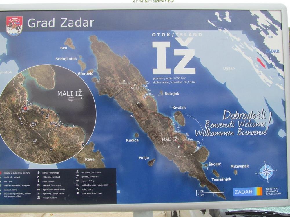 Ostrov Iž patrí k menším ostrovom – 12,5 x 2 ,5 km s najvyšším kopcom Korinjak (168 mnm), má 2 mestečká - Mali Iž a Veli Iž. Pred 2. svetovou vojnou tu žilo vyše 3.500 obyvateľov a živili sa prevažne rybárstvom, pestovaním olív a viniča. Počas 2. svetovej vojny zahynulo vyše 500 Ižanov, dnes tu býva len okolo 100 stálych osadníkov a mladí naďalej odchádzajú... Z ostrova Iž mizne nielen rybárstvo, ale aj políčka zostávajú spustnuté... Atrakciou ostrova sú staré autá (doslova šroty) bez poznávacích značiek, nie sú registrované - zaujímavosťou je, že na ostrove nie je ani jeden policajt.